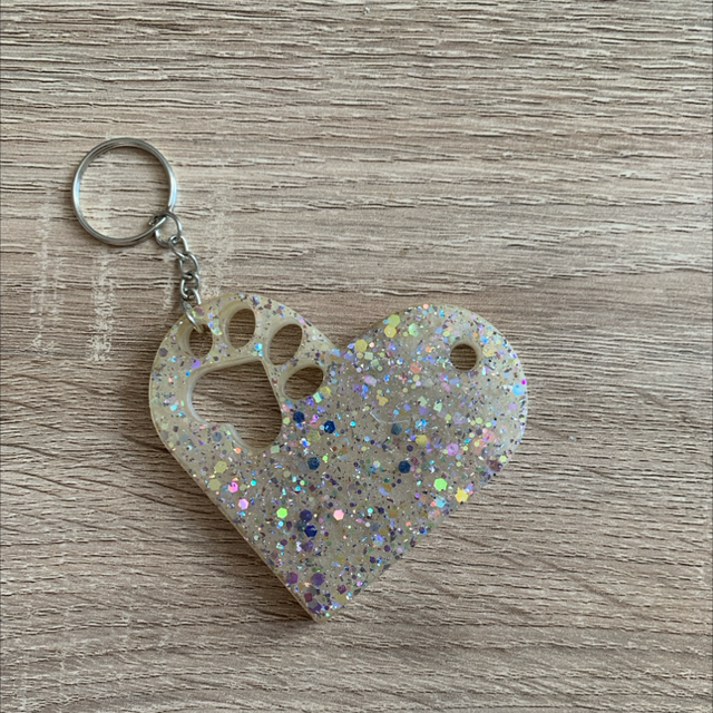 Un porte-clés original en résine, combinant un cœur et une patte. Chaque pièce est réalisé artisanalement est constitue une jolie attention à offrir.