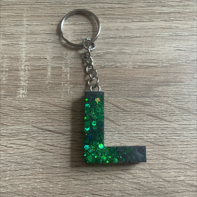 Porte-clés personnalisé en forme de lettre, réalisé en résine. Chaque pièce est unique et peut symboliser une initiale ou une attention particulière.