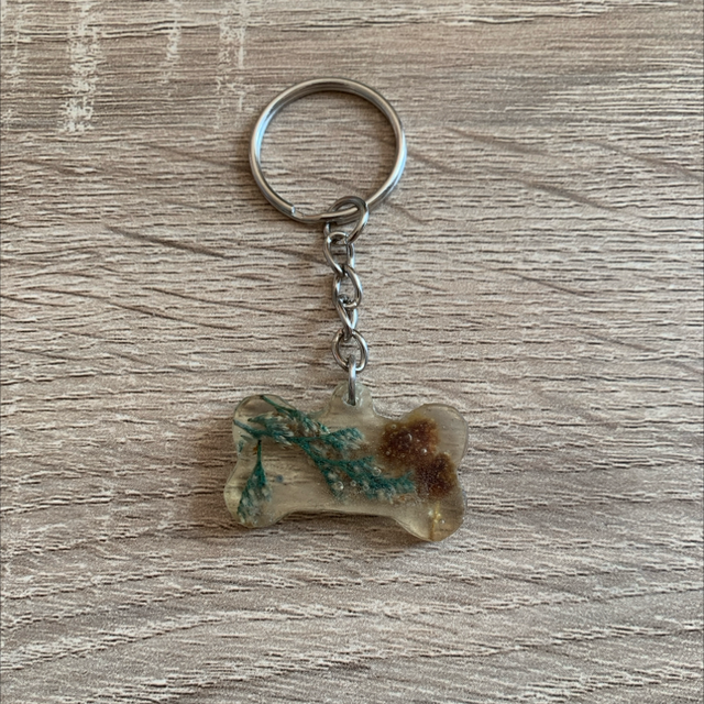 Un porte-clés en résine en forme d’os, disponible en plusieurs tailles. Pratique originale, chaque modèle est unique et artisanale